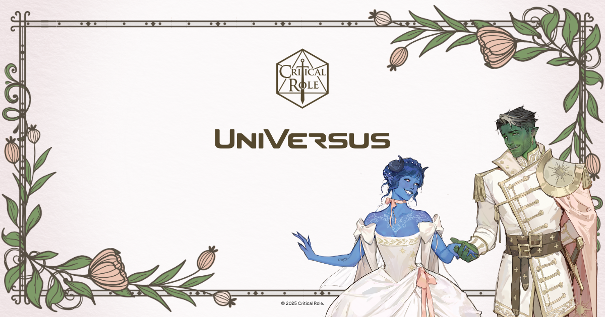 The big day is coming—Jester and Fjord are officially getting married, and UniVersus is joining the celebration! To mark the occasion, we’re bringing you exclusive wedding-themed promo cards with beautiful official art of the happy couple. Each has two unique versions, making this a truly special release for Critical Role and UniVersus fans alike!