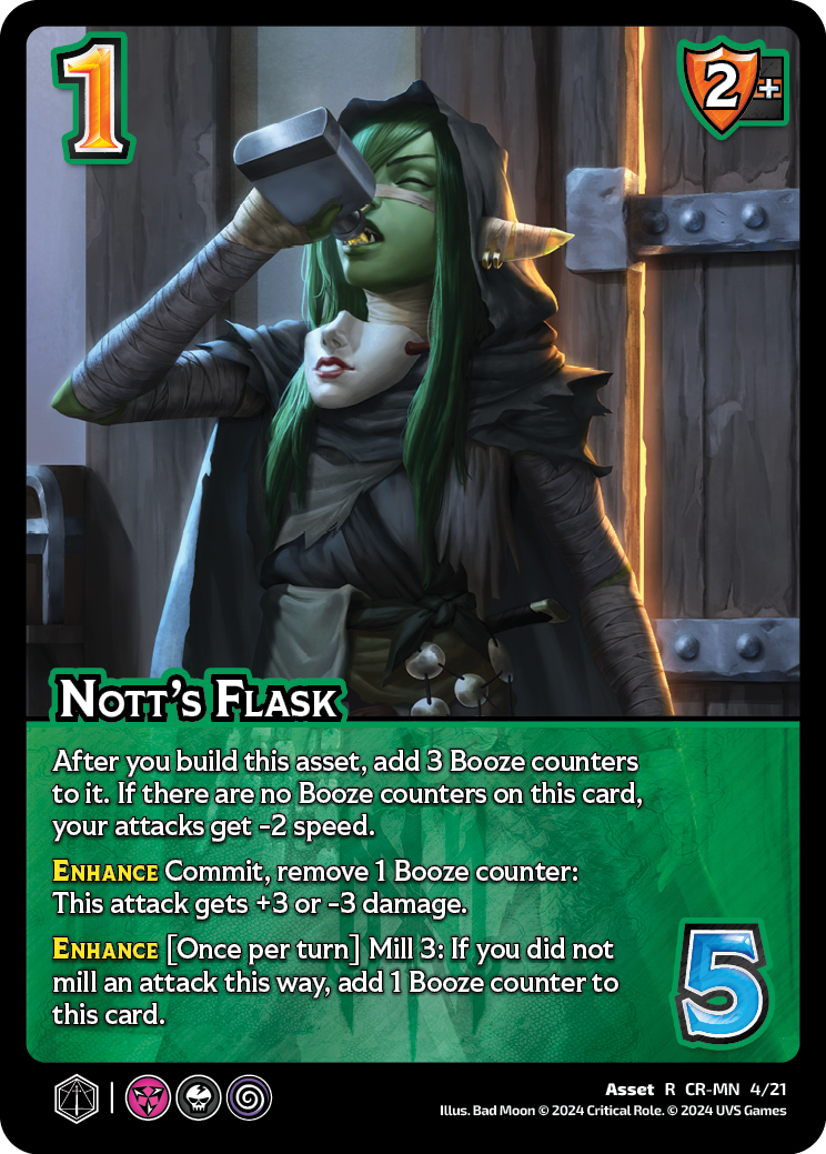 Identified by the green text box, Asset cards are essentially “tools and equipment” used by your character—while they cannot be used/committed to pass checks to play a card–they can be used for a variety of different effects, whether it’s to heal from damage, boost an Attack’s speed or damage, or to tighten up your defense.