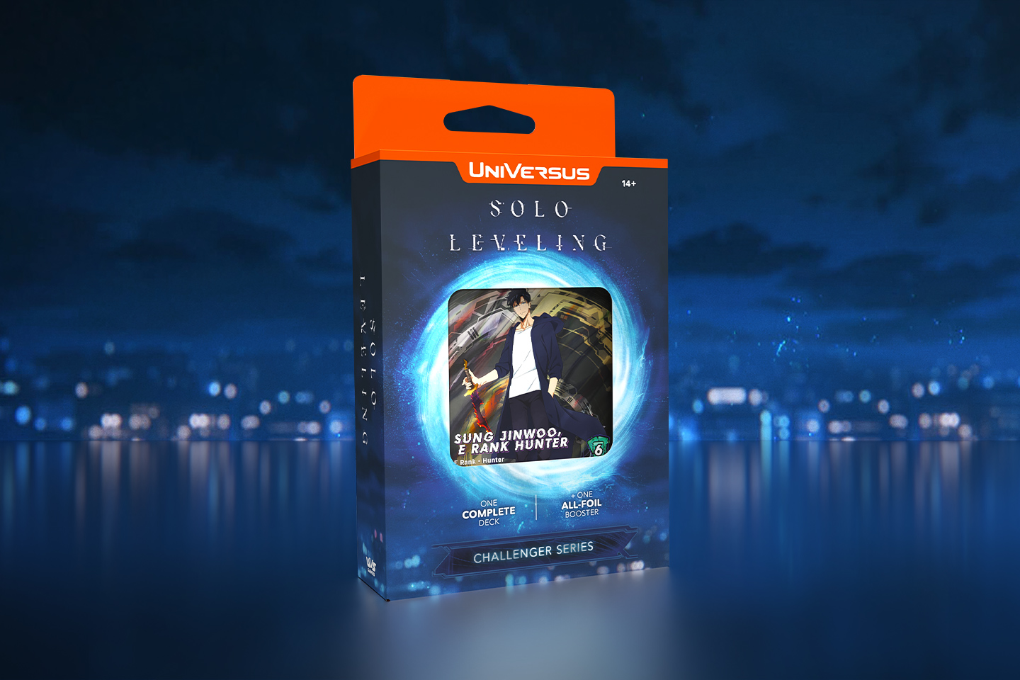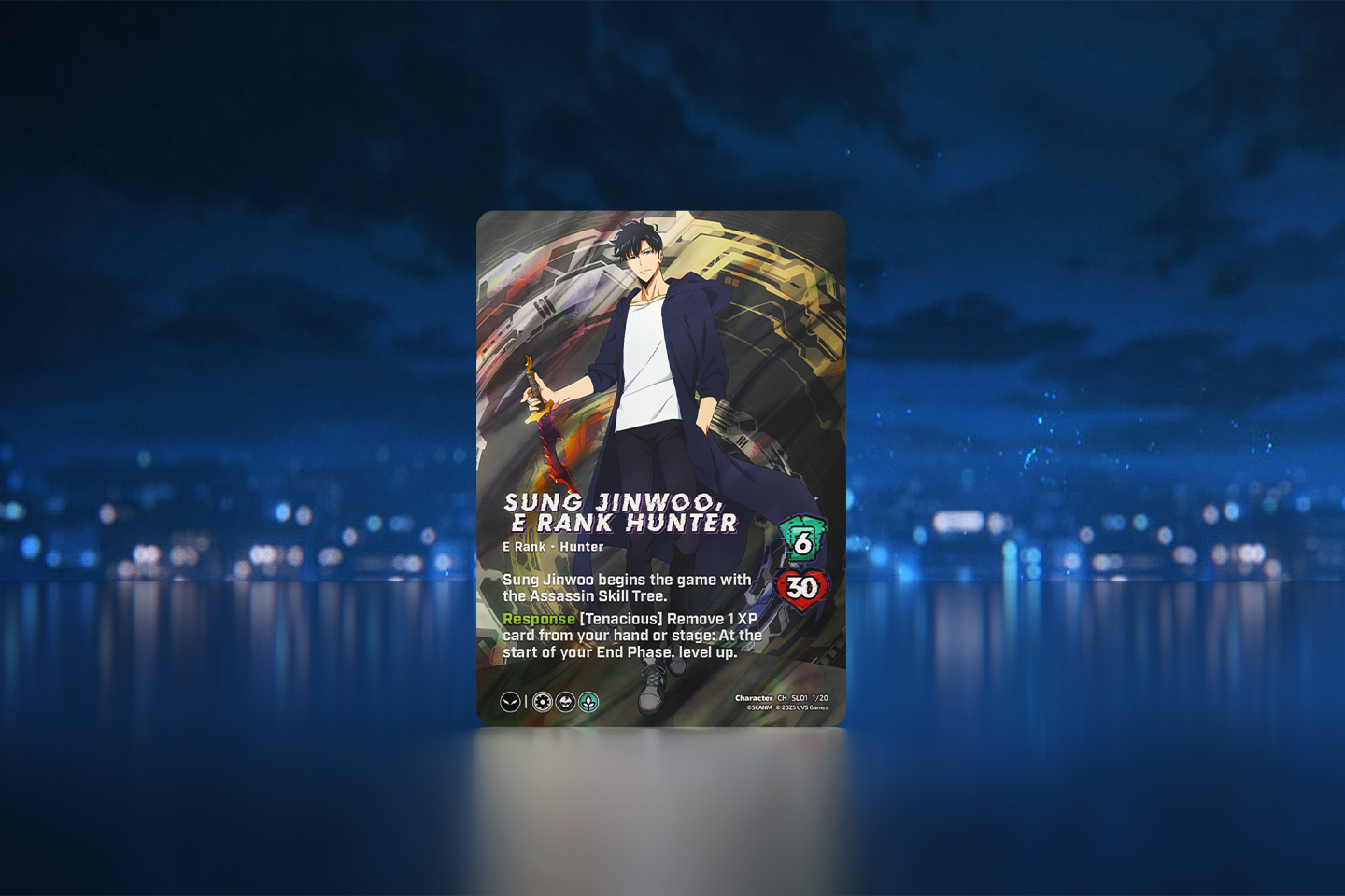 The Solo Leveling Challenger Series brings the unstoppable rise of Sung Jinwoo to the UniVersus card game. Starting as the weakest hunter, Jinwoo’s deck evolves just like his character—unlocking new abilities and growing stronger as the game progresses. With the groundbreaking skill tree mechanic, players can experience the thrill of leveling up with every move, mirroring Jinwoo’s legendary journey from E-rank to the ultimate hero. Dominate your opponents with Jinwoo’s unique abilities and feel the power surge as you reach new heights!