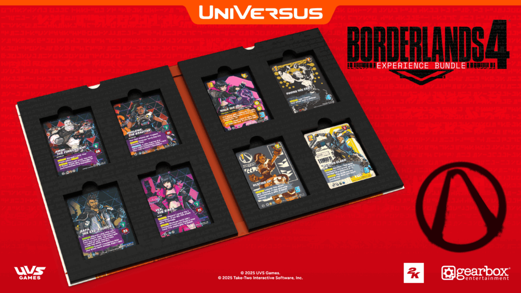 Gear up! The Borderlands 4 Experience Bundle arrives on December 5th, featuring four Alt-Universe character cards inspired by the newest Vault Hunters, plus four complementary cards that highlight their themes, style, and identity. Each bundle includes one copy of every character card and four copies of each supporting card, giving players a set to collect or play right out of the box.