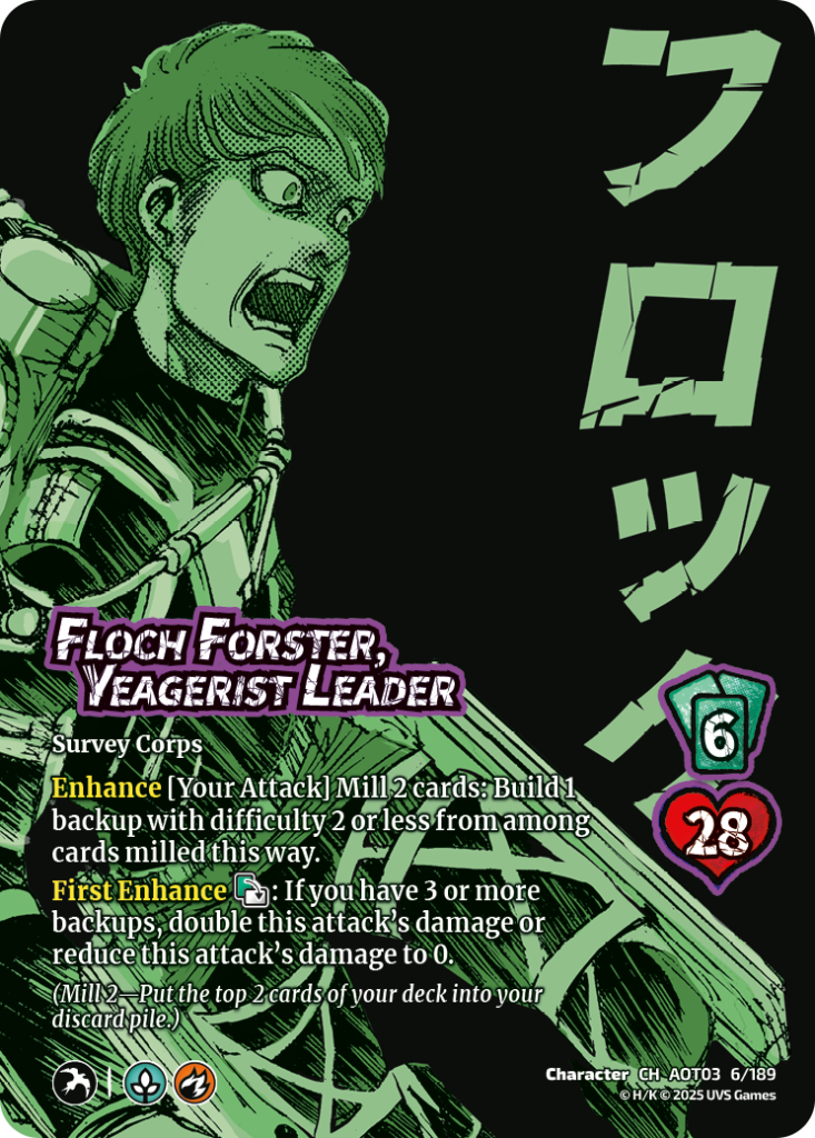 Floch fights on by quickly assembling an army of soldiers that reduce the cost of Humanity Fights On into low difficulty hard hitting attacks. Even better when you get late into the string, he can double up the damage making for a massive, fast attack that can come from any zone.