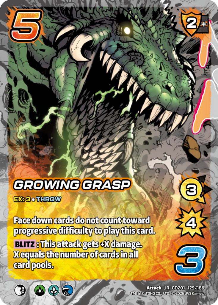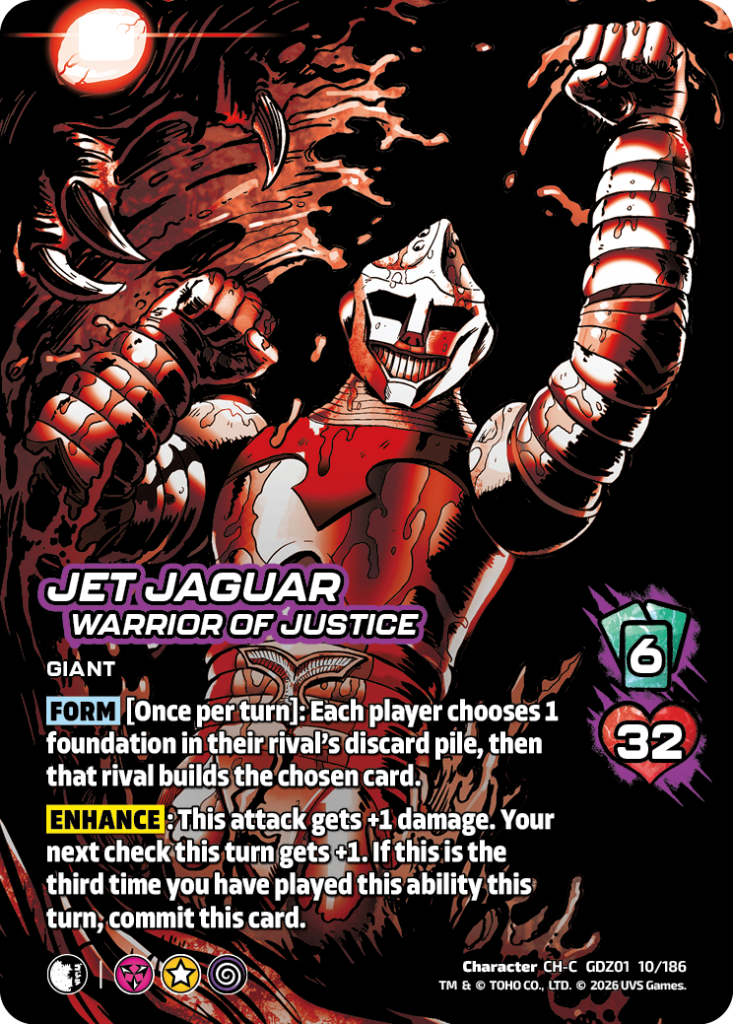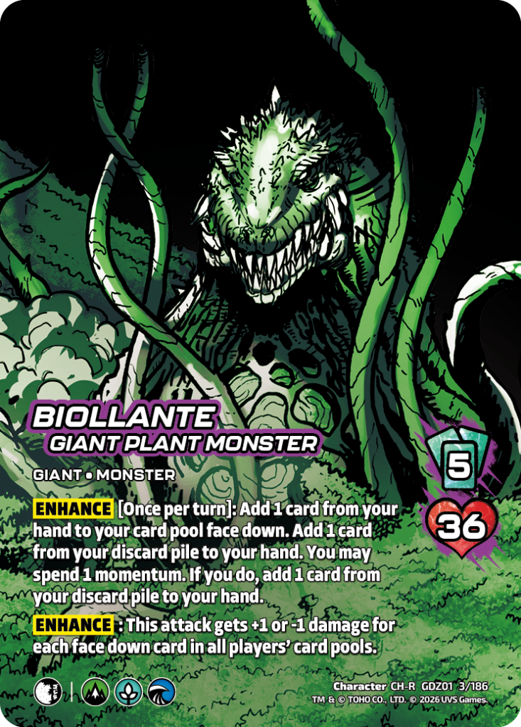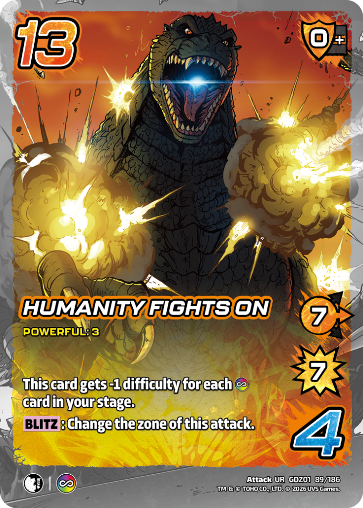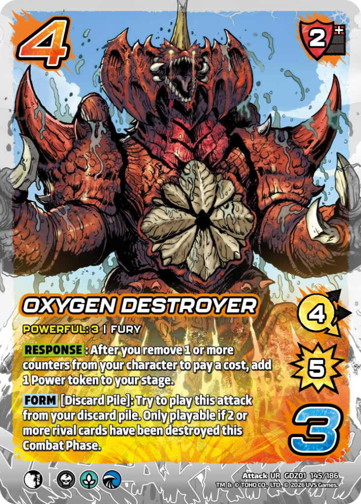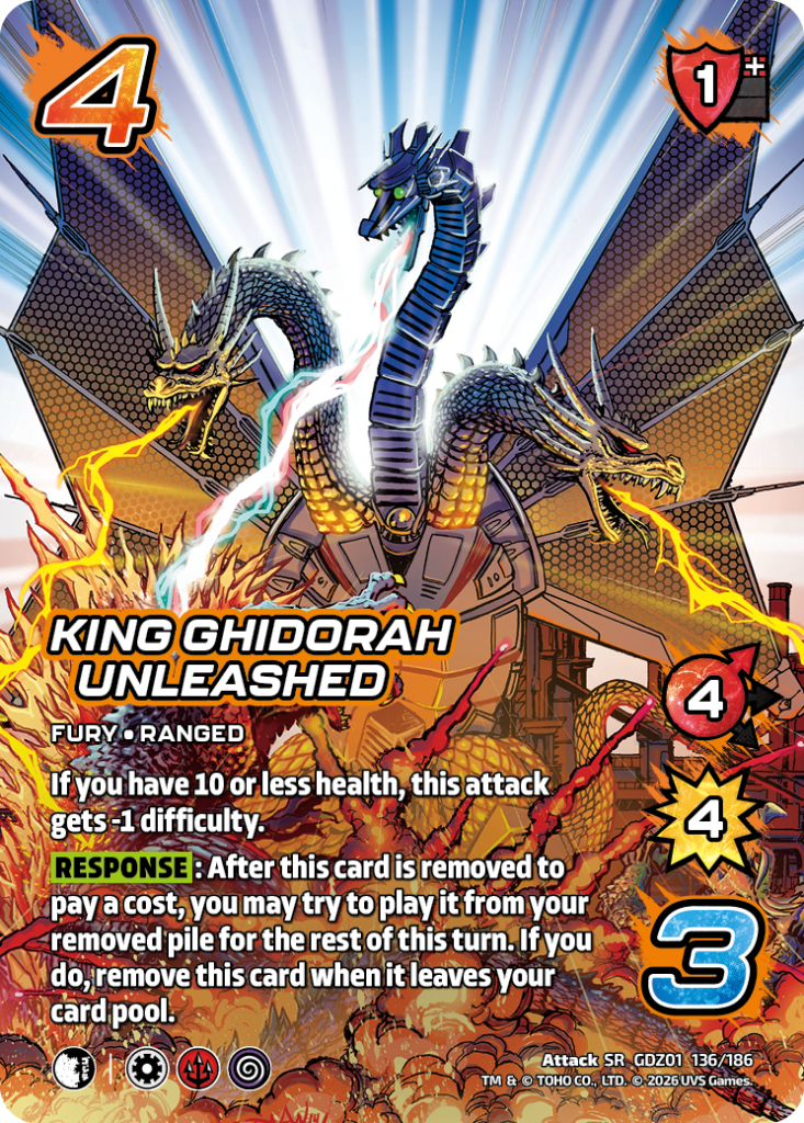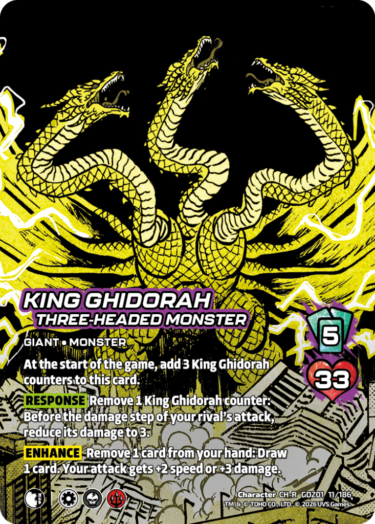 Hello UniVersus players and Godzilla enjoyers. My name is Jeremy Ray, UVS Games Senior Game Designer. I’m here today to share with you some of my favorite combos and synergy plays that you can do with the new cards in Godzilla: Reign of Kaiju.