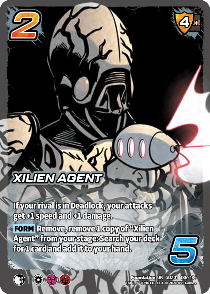 NEW: While this card is in your stage, if your rival is in Deadlock, your attacks get +1 speed and +1 damage.