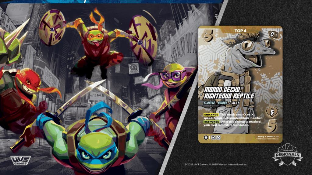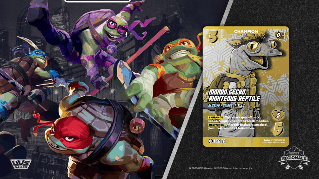 Cowabunga Players! From the streets of the Big Apple, direct to your regional, The Teenage Mutant Ninja Turtles are ready to join YOU in kicking some shell for 3 exciting weekends all around the world. Join your friends, your rivals, and the UniVersus community as everyone comes together and tests their might to see who will be crowned a Champion. Not just the Main Event, but our prize wall returns bigger than ever! With side events going all weekend to earn Prize Wall Tickets you can earn a pizza box full of fun goodies to take home!